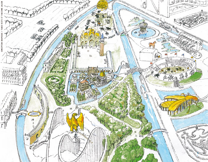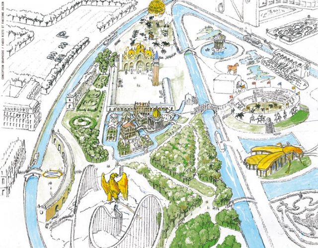 Yves Jago, a French politician in the Parti Radical, is proposing a project to build a historical theme park to celebrate the life and legacy of Napoleon Bonaparte.  The theme park would include historical reenactments of political events, battles, army camps, and daily life during the French Revolutionary and Napoleonic period (1789-1815). The picture above is an artist’s rendering of Napoleonland, as shown in a story by The Guardian.