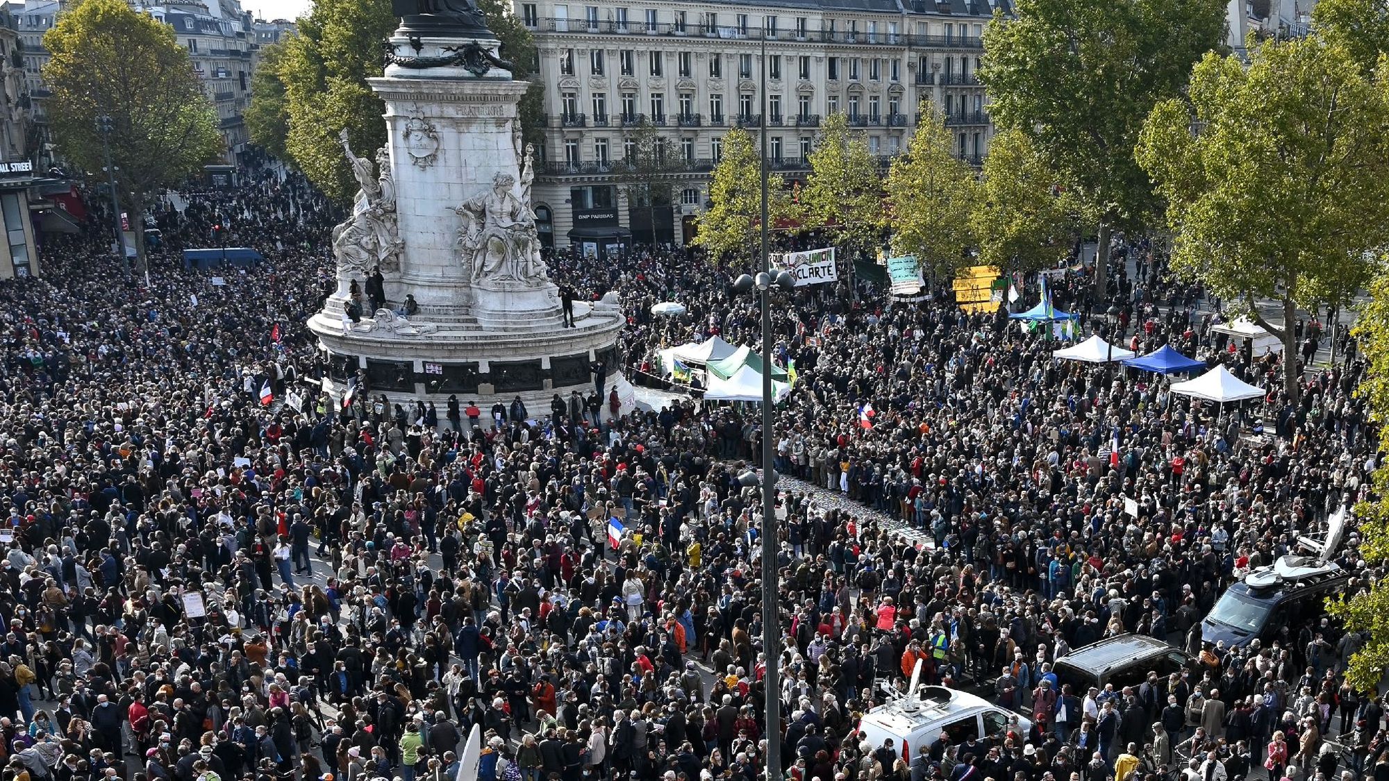 Rally in memory of Samuel Paty in the place de la République in Paris. Photo: L’Express.