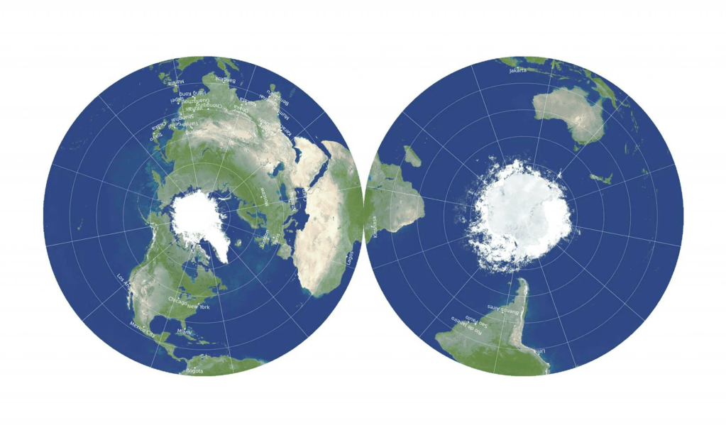 A new world map may transform the way we look at the earth. This map is a two-dimensional double-sided disk centered on the earth’s poles.