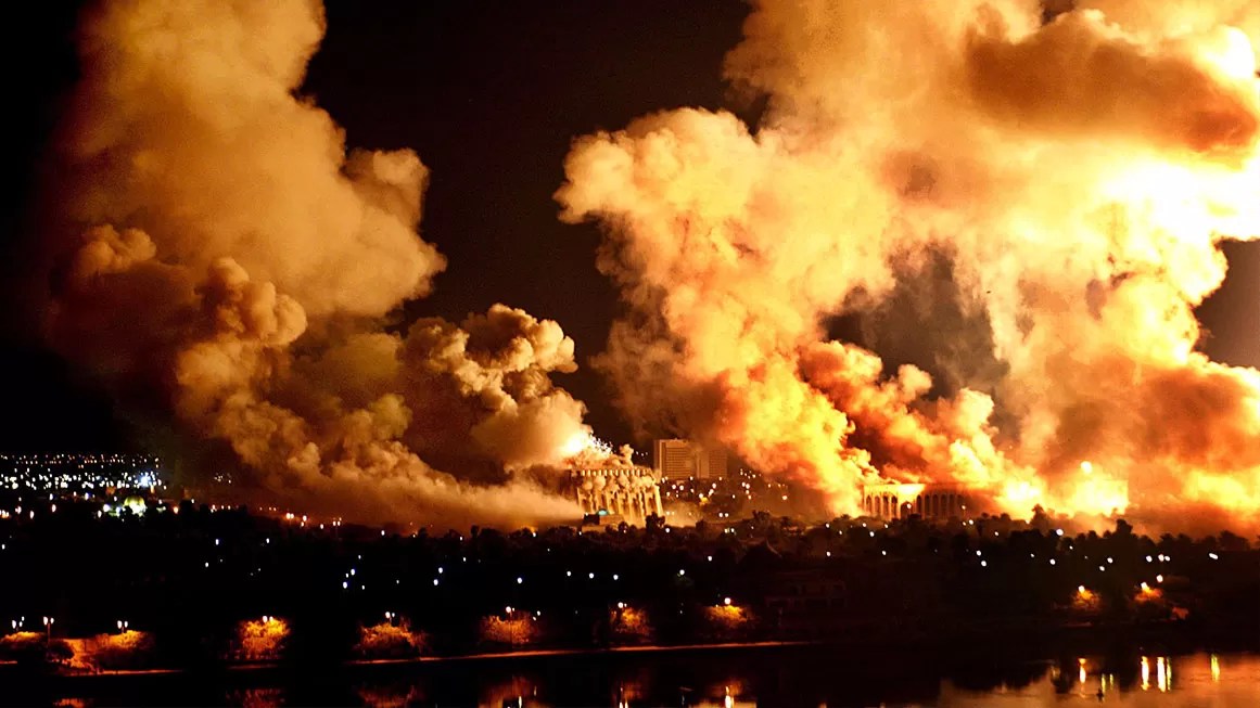 Bombardment of Baghdad at the beginning of the Invasion of Iraq on 21 March 2003. Image: Mirrorpix/Getty.